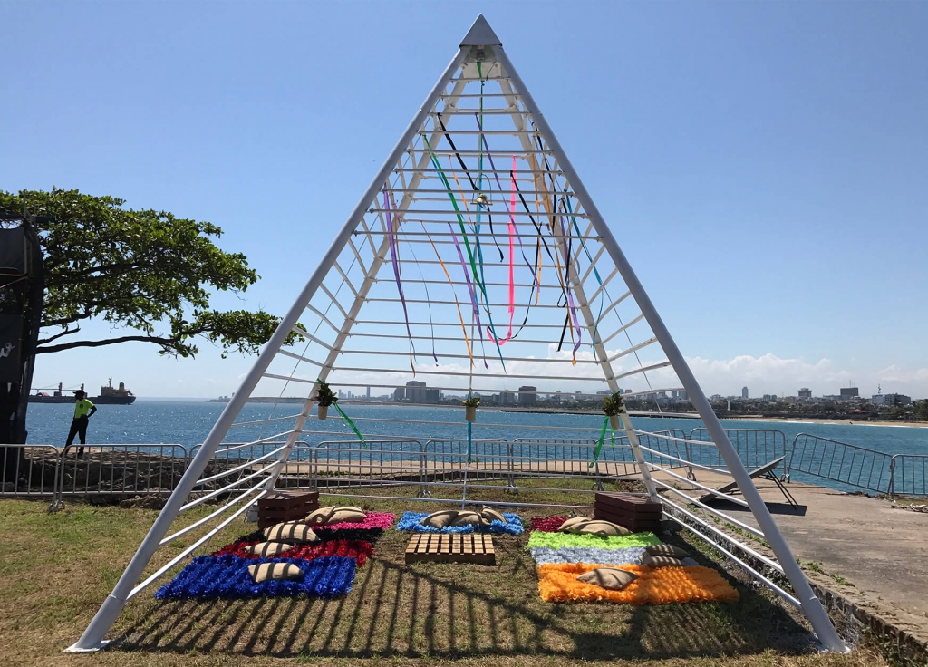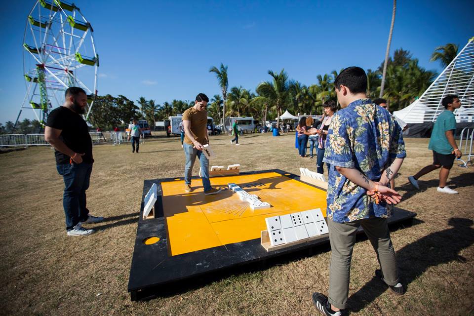 Following the eclectic aesthetic of the brand, the pyramids were configured to shelter a VIP seating area and bar and a smaller one for lounging. They wanted to integrate cultural Dominican elements and that’s achieved via the use of the rugs and ornamentation that were laid in the ground for the festival goers to use when they needed to sit down, another cultural element was the giant dominoes table that people had to walk on to in order for them to play. Two small stages were placed on the field, one for a theatre performance with a setup of a living room and another for a group of traditional musicians to play in when the main stage was not in use.